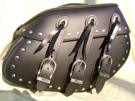 sakwy wykonane są ze skóry w pierwszym gatunku o grubości 4-5 mm. Dodatkowo usztywnione specjalną pianką (Trocelen), która utrzymuje kształt sakwy podczas wieloletniego użytkowania. Tylna ścianka sakwy usztywniona jest blachą stalową o grubości 1-1,5mm. Dzięki temu rozwiązaniu można przymocować sakwę do stelaża bez narażania się na pęknięcie przy wierceniu, jak ma to miejsce przy tworzywach sztucznych. We wszystkich naszych artykułach jest możliwość montażu zamykania na kluczyk, przez co klient zyskuje dodatkowe zabezpieczenie. Skóra dodatkowo ma powłokę od wilgoci.