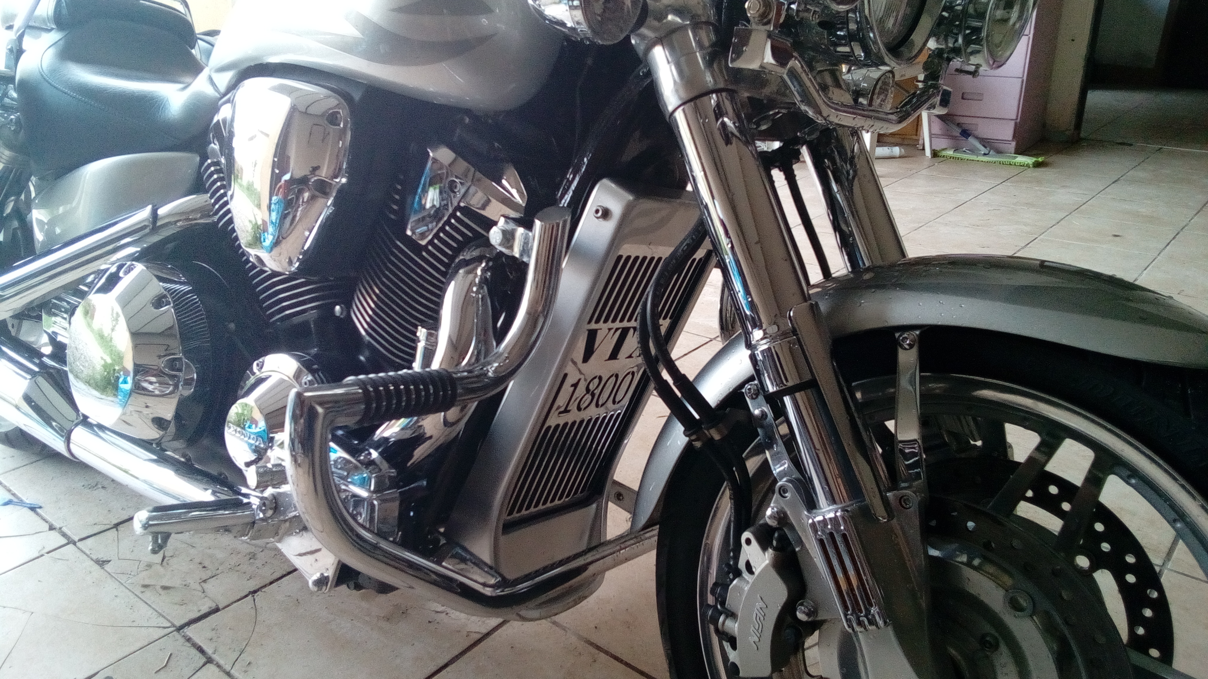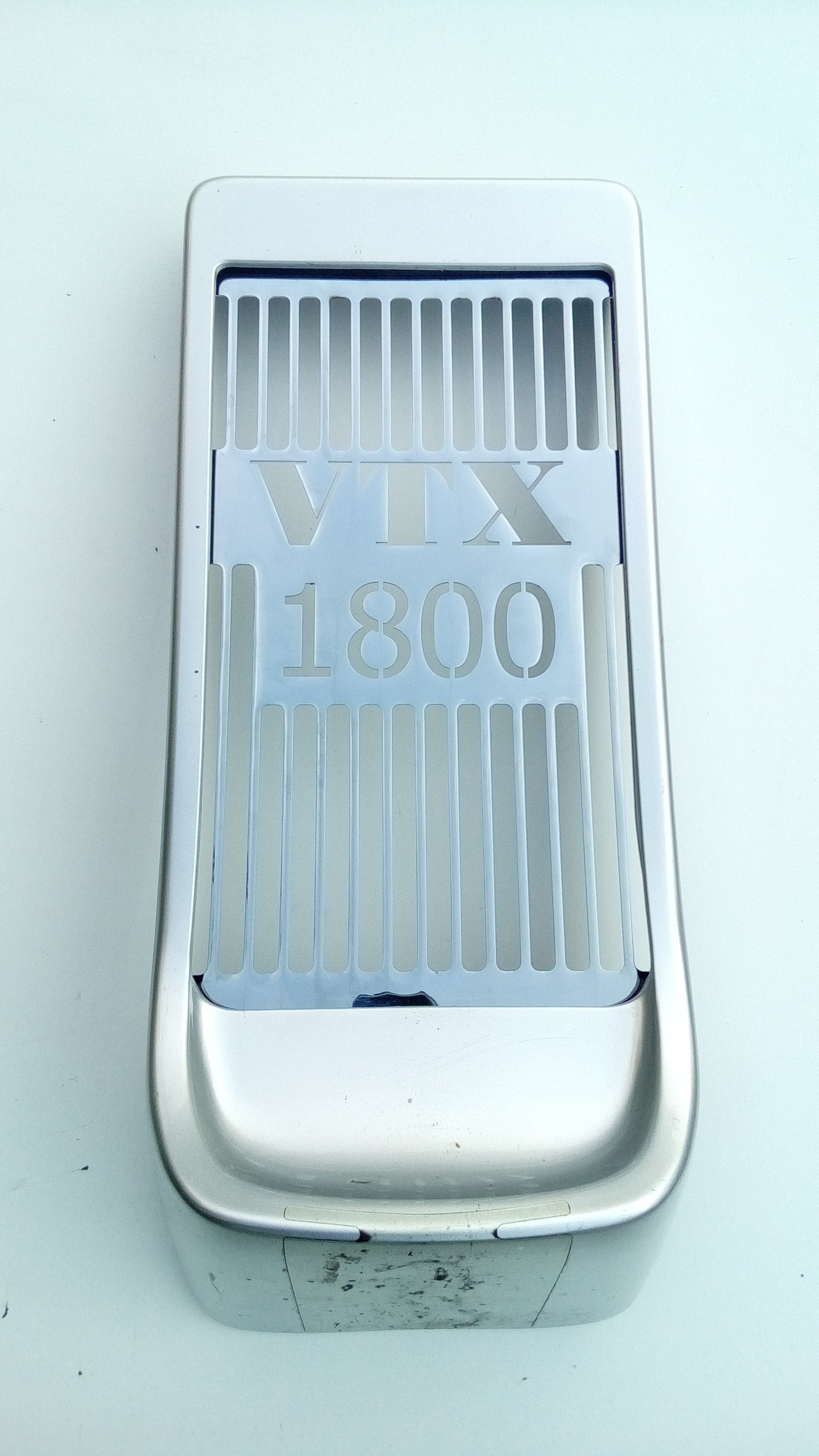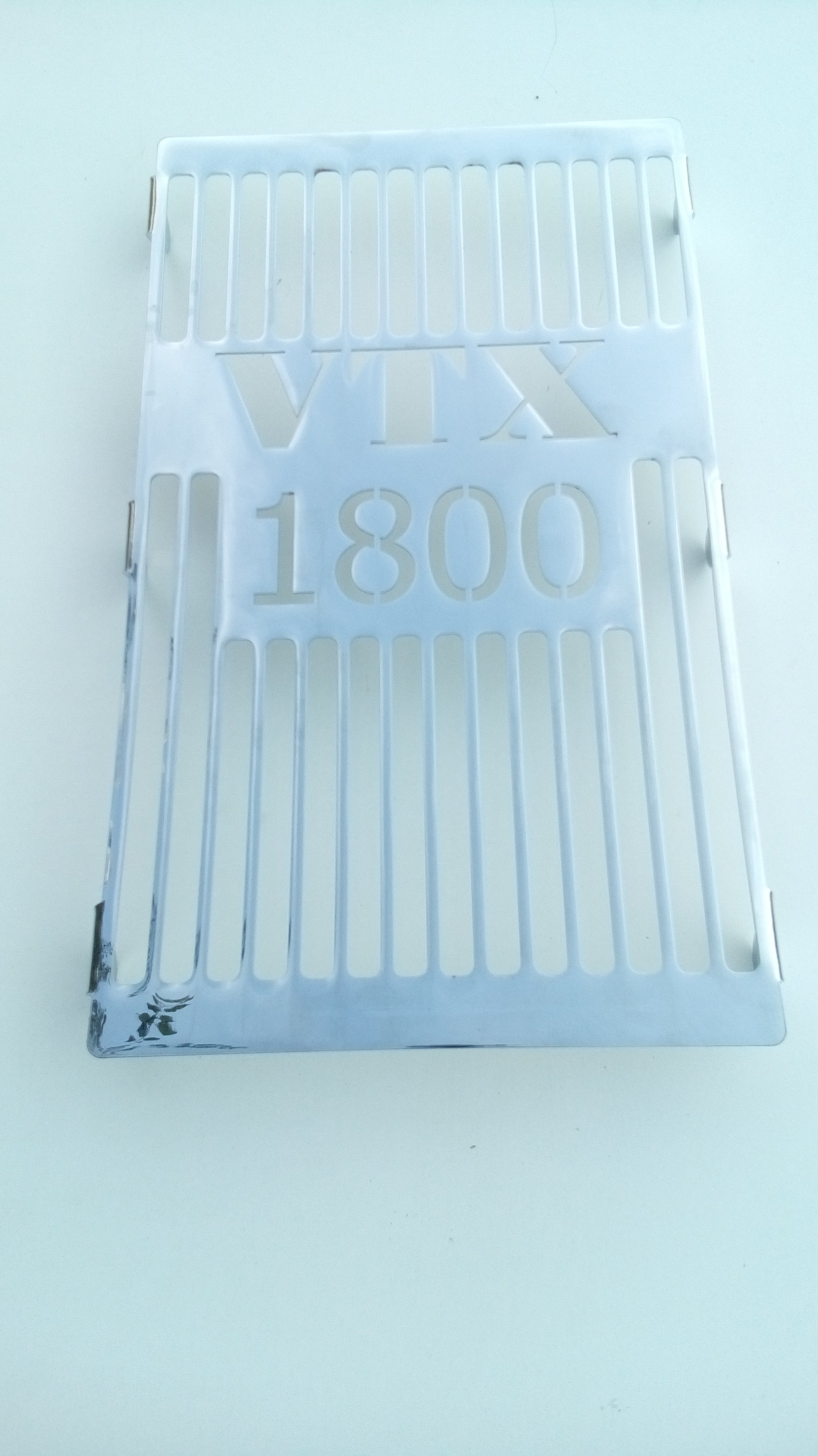 Osłona chłodnicy - wkładka montowana w wewnętrzną stronę plastikowej oryginalnej osłony PO ZDJĘCIU SIATKI FABRYCZNEJ Wykonana z blachy stalowej 1,5mm polerowanej a następnie chromowanej trój warstwowo na podkładzie z miedzi Pasuje do : VTX 1800 F 2005r 2008r Dane techniczne
